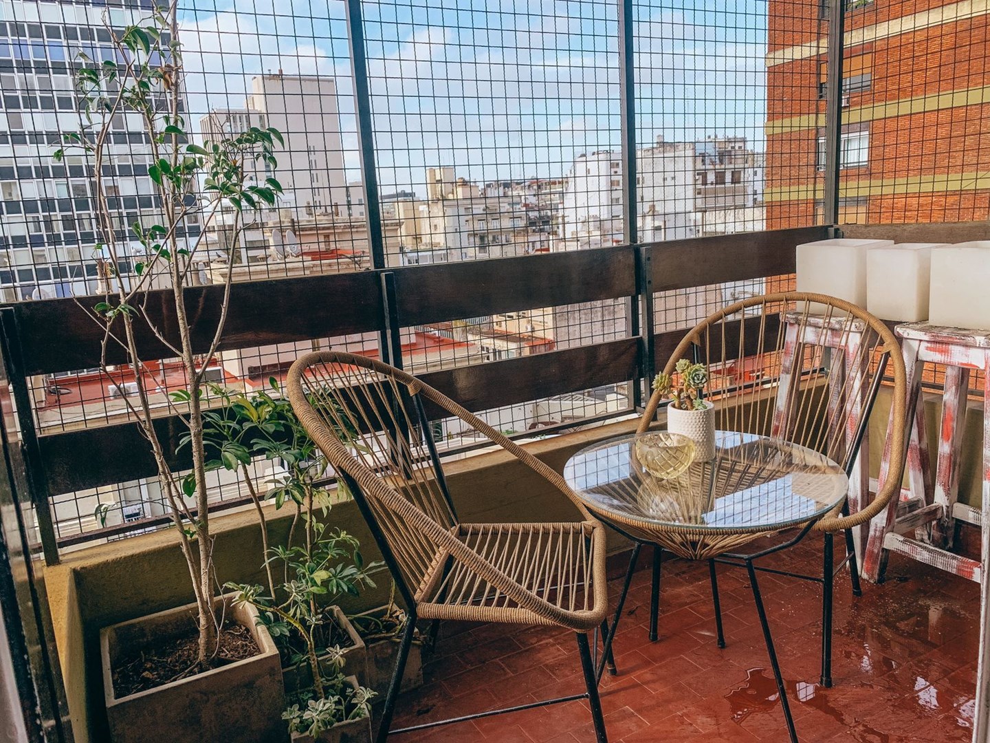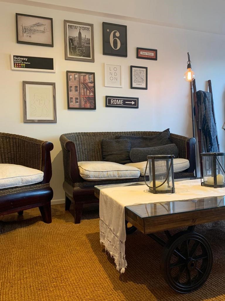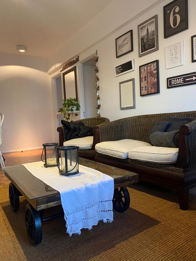 Excelente departamento de dos dormitorios, muy canchero decorado, Living comedor a balcón en un piso alto. Dormitorio principal con cama matrimonial y segundo dormitorio con cama matrimonial también. Los dos dormitorios con placard y principal con una TV. Gran placard en pasillo. Baño completo y baño de servicio. Cocina con comedor diario y pequeño cuarto de escritorio. Tiene lavarropas. Muy funcional. El edificio tiene seguridad 24 hs. Está ubicado en la zona residencial de Retiro. Muy buenas conexiones en subte (linea C) y en colectivo a través de la Av Santa Fé o 9 de Julio. A diez minutos caminando de Recoleta y a quince minutos caminando de Puerto Madero. Mas gastos de luz y gas. Y limpieza final -------------------------------------------------------