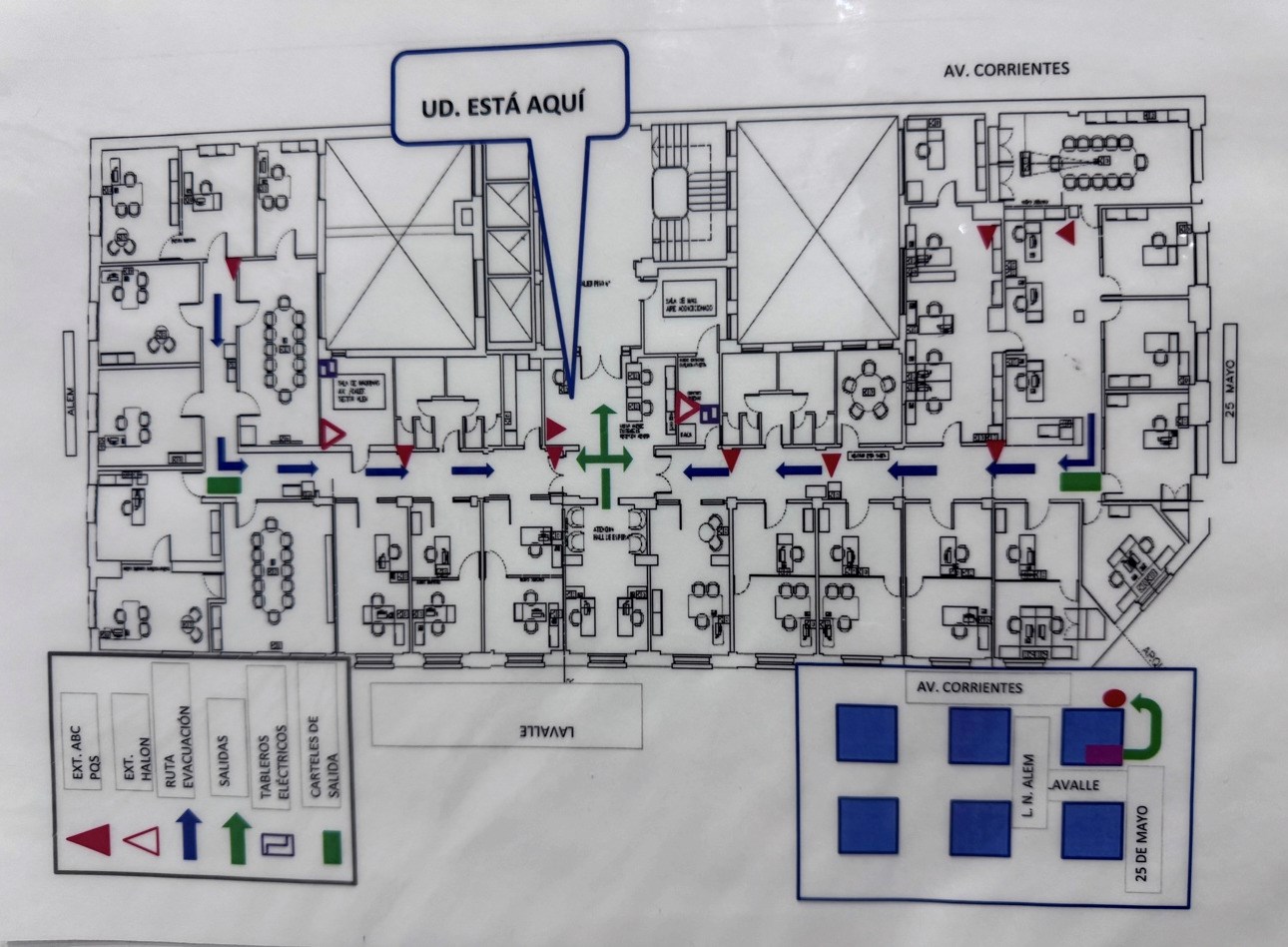 Cuenta con 983,77 m2 de uso exclusivo del propietario/locador (considerando oficinas y pasillos) y 50,4 m2 comunes (Hall de entrada y escalera).